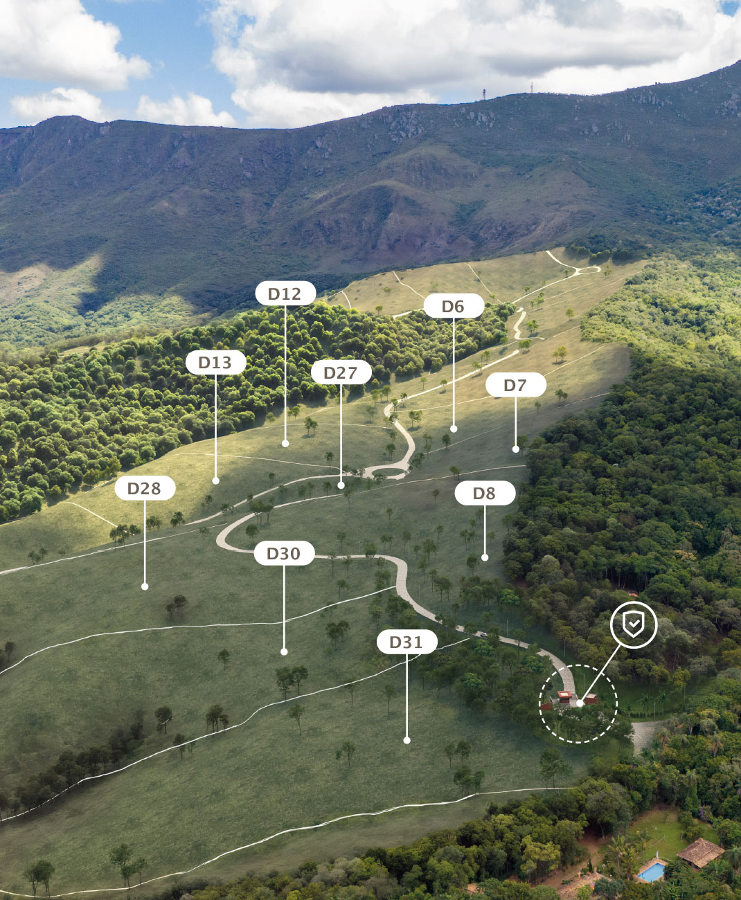 São mais de 500 mil m² de área total, com mais de 150 mil m² de área verde preservada. Tudo isso aos pés da Serra da Piedade, monumento natural que impressiona a todos que avistam.