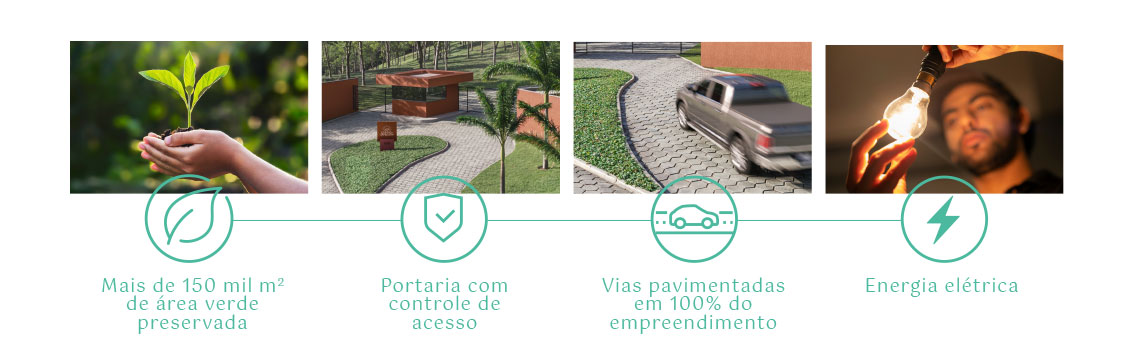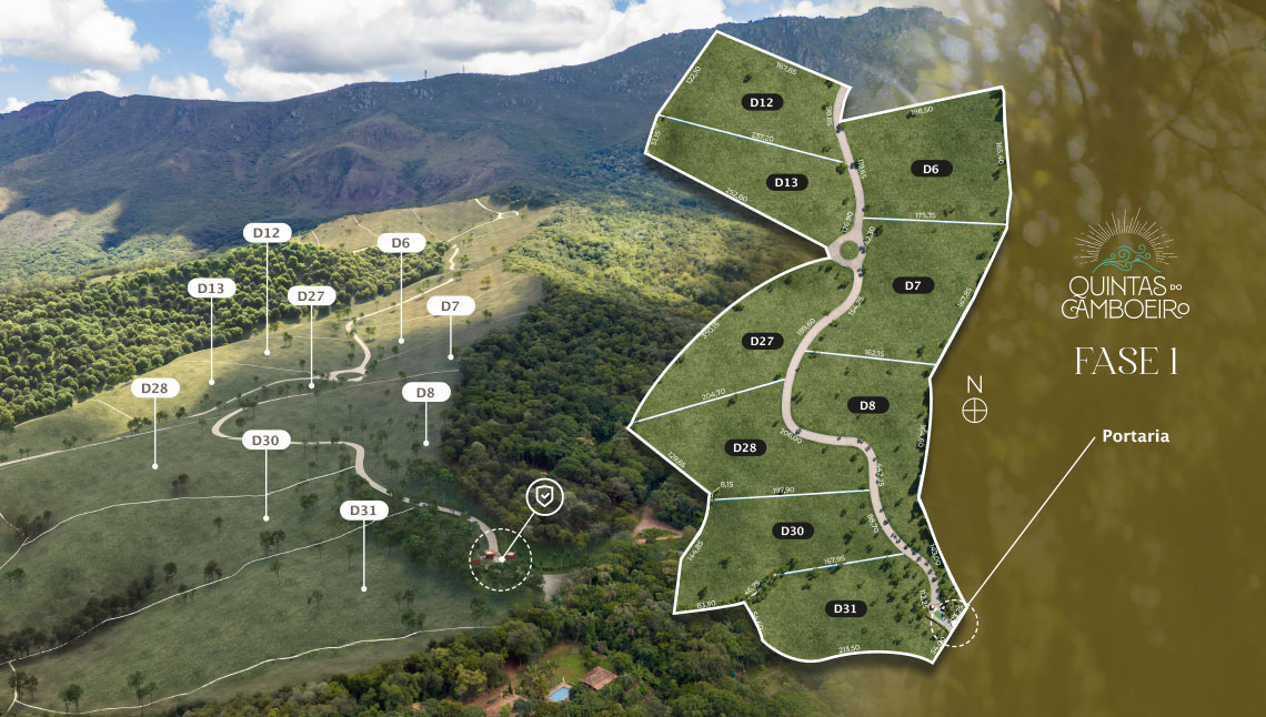 Com áreas a partir de 20 mil m², o Quintas do Camboeiro disponibiliza apenas 9 propriedades exclusivas em sua primeira fase de comercialização. Aqui você encontra vias pavimentadas em 100% do condomínio, energia elétrica e portaria de controle, além da assinatura PHV URB.